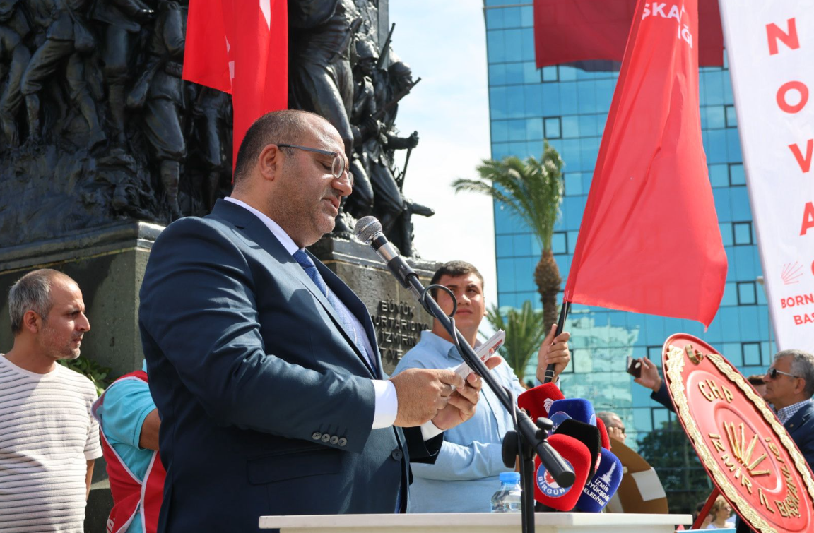 CHP İzmir İl Başkan Vekili Ali Alan yaptığı konuşmada kayyum uygulamasını sert sözlerle eleştirdi. Alan, “Bugün İstanbul İl Başkanlığımıza kayyum atanması sadece partimize değil, demokrasiye ve milli iradeye karşı yapılmış bir darbedir. Cumhuriyet Halk Partisi’nin seçilmiş il başkanının adı Özgür Çelik’tir ve hiçbir ısmarlama mahkeme kararı, hiçbir iktidar baskısı bu gerçeği değiştiremez. 9 Eylül ruhuna sahip Cumhuriyet Halk Partililer olarak biz, Mustafa Kemal’in askerleri gibi bir adım geri atmadan mücadelemizi sürdüreceğiz. Sandıkla gelenler sandıkla gidecek” dedi.