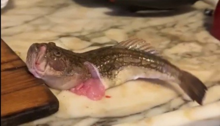 Yaşadığı olayı anlatan Tarım, “Daha önce hiç tecrübe etmediğim bir durumdu. Balığı temizlerken aniden elimden fırladı ve tezgah üzerinde canlı hareketlerini sürdürdü. Bu karşısında tedirgin oldum ve korktum” dedi.