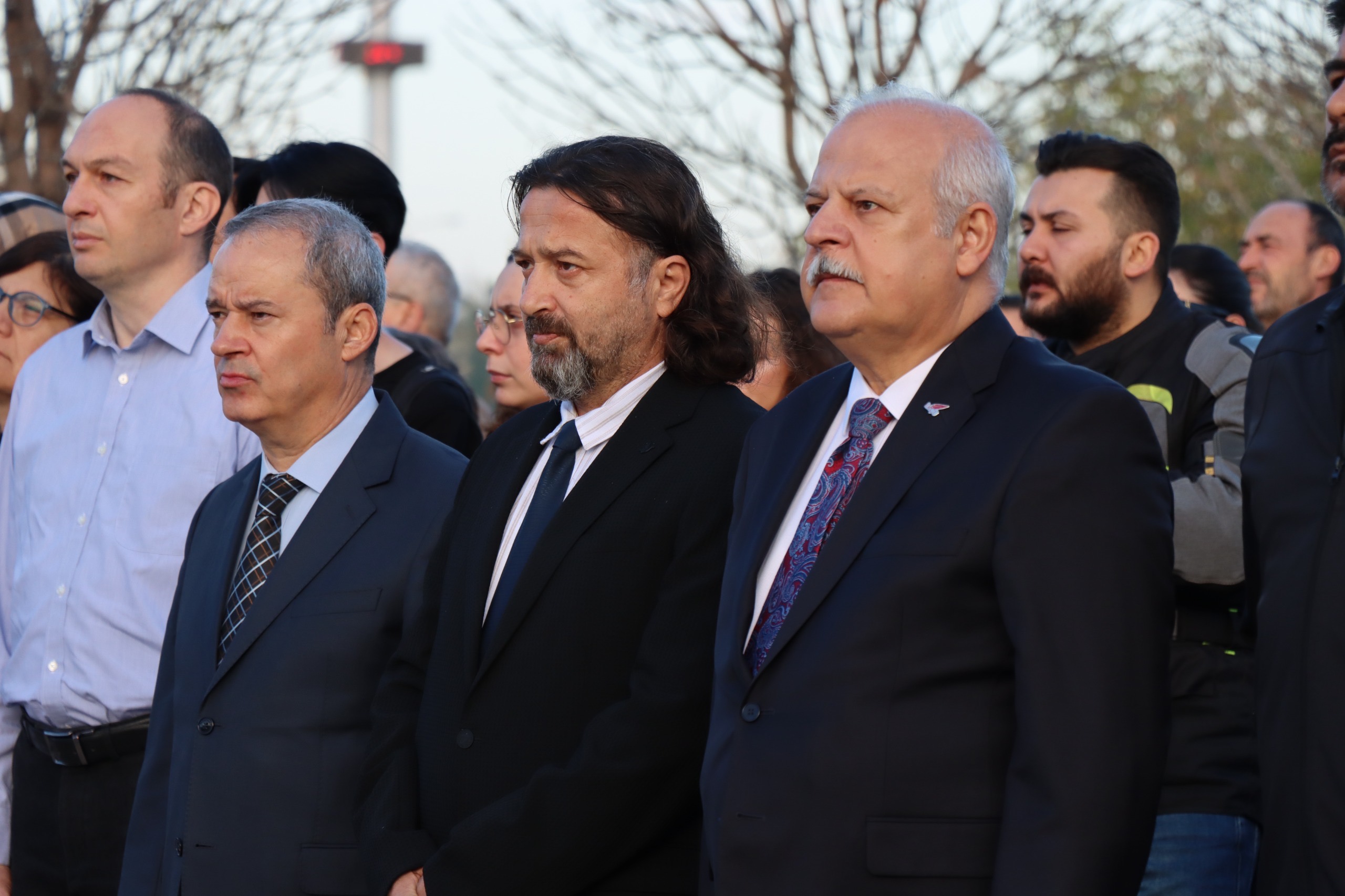 Törende, İKÇÜ Rektör Yardımcısı Prof. Dr. Yasin Bulduklu tarafından Atatürk Anıtı’na çelenk sunuldu. Ardından saat 09.05’te sirenler eşliğinde saygı duruşunda bulunulması ve İstiklal Marşı’nın okunmasıyla birlikte bayraklar yarıya indirildi. Program, tören düzeninin tamamlanmasıyla sona erdi.