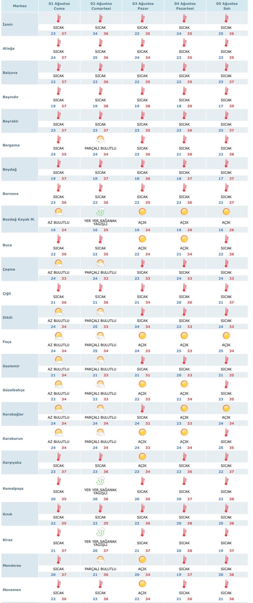 Meteoroloji Genel Müdürlüğü'nün verilerine göre İzmir genelinde sıcaklıklar 40 derecenin altına düşecek.