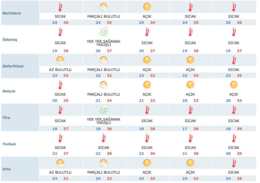 İzmir’in ilçelerinde hava sıcaklıkları 40 derecenin altına düşüyor