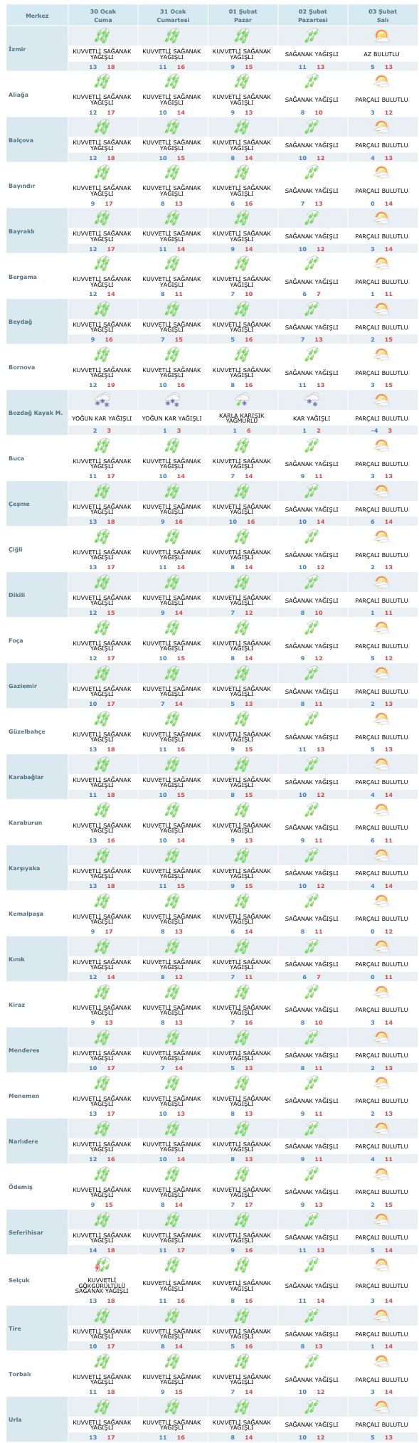 Meteoroloji Genel Müdürlüğü (MGM), İzmir genelinde etkili olması beklenen gök gürültülü sağanak yağış ve kuvvetli rüzgâr nedeniyle sarı kodlu uyarı yayımladı. Uyarı kapsamında kent merkeziyle birlikte birçok ilçe risk altında bulunuyor.