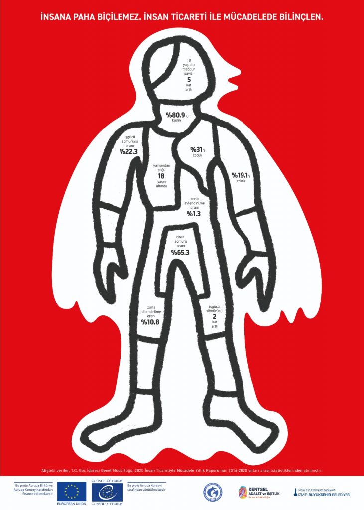İzmir Büyükşehir Belediyesi’nin göçmenlerin, kadınların, çocukların ve diğer hassas grupların maruz kaldığı işgücü sömürüsü ve insan ticareti konusunda farkındalık yaratmak amacıyla düzenlediği ulusal afiş yarışmasının kazananları belli oldu. “İnsan Ticareti ile Mücadele Adına Ses Ol” adıyla yapılan yarışmanın birincisi Taha Bekir Murat olurken, ikincilik ödülünü Umut Altıntaş, üçüncülük ödülünü ise Aygen İncel aldı. Aslı Yıldız’ın tasarımı ise mansiyon ödülüne layık görüldü.