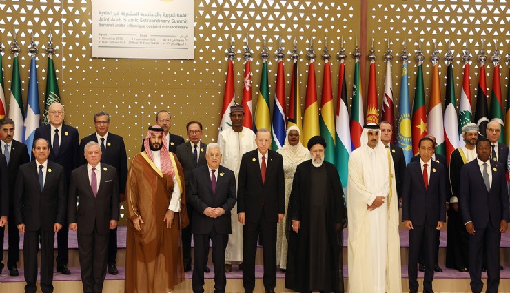 Suudi Arabistan’ın başkenti Riyad’da İslam İşbirliği Teşkilatı (İİT) ve Arap Birliği tarafından ortaklaşa düzenlenen 8'inci Olağanüstü İslam Zirvesi'nin ardından ortak bildirge yayımlandı. Bildirgede, "İsrail'in Gazze Şeridi'nde ve Kudüs-ü Şerif dahil olmak üzere Filistin topraklarının tamamında Filistin halkına yönelik saldırılarını görüşmek ve bahsekonu saldırganlığa ve saldırganlığın yol açtığı insani faciaya karşı durduğumuzu, buna ve İsrail’in işgali süreklileştirmek ve Filistin halkını başta özgürlük ve kendi ulusal topraklarının tamamı üzerinde bağımsız ve egemen bir devlet kurma hakkı olmak üzere tüm haklarından mahrum bırakmaya yönelik tüm diğer yasadışı faaliyetlerini durdurmak için çalıştığımızı teyit ederiz” ifadeleri kullanıldı.