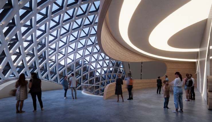 “Gaziemir’de cumhuriyetimizin temel taşlarını güçlendirmek için kültür ve sanat faaliyetlerine önem veriyoruz. 100 yıllık cumhuriyetimizin adını taşıyacak sembol bir sanat merkezi inşa edeceğiz” diyen Belediye Başkanı Halil Arda, “Yakın zamanda, İzmir’in belki de sembol binalarından birini şehrimize kazandıracağız. Gaziemir kültürle sanatla büyüyen bir ilçe. Bu misyonun en önemli parçalarından biri de bu sanat merkezi olacak. Merkezimiz, uçaktan bakanların meraklanacağı, şehre girerken insanların gözünü alamayacağı, akışkan mimari formu ile çağı yakalayacak ancak yerel motiflerin de içinde işlendiği özel bir tarzda tasarlandı. ODTÜ mezunu iki genç mimar ile bu tesisin mimarisi için çalıştık. Genç ve yetenekli mimar arkadaşlarımız, zihnimizden geçenleri birebir uyguladılar ve ortaya bu muazzam yapı çıktı” diye konuştu.