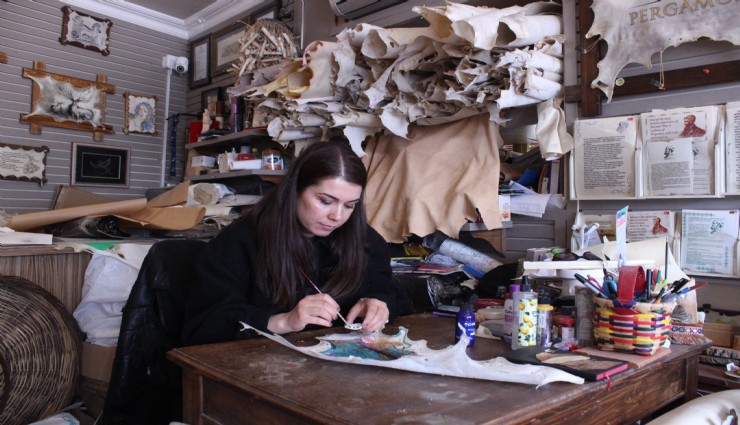 Hayvan derisinden yapılan ve adını Bergama’dan (Pergamon) alan parşömen kağıdının geçmişi, 2 bin 200 yıl öncesine dayanıyor. Yaşayan İnsan Hazinesi Geleceğe Aktarılan Mirasın Temsilcisi Ödüllü İsmail Araç’tan parşömen kağıdı üretiminin inceliklerini öğrenen 32 yaşındaki Meltem Demirel, Bergama’da parşömen üreten tek kadın olarak öne çıkıyor. Deriyi işleyerek kağıt haline getiren Demirel, ürünlerini hem yurt içi hem de yurt dışında satıyor.