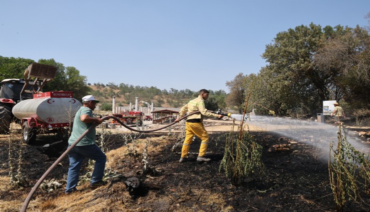 Muğla'da Yatağan-Milas karayolu yakınında başlayan ve Stratonikeia Antik Kenti'ne sıçrayan yangında zeytin, incir, nar ve badem ağaçları yandı. Yangın, havadan ve karadan yapılan müdahaleyle antik kentine içerisine yayılmadan kontrol altına alındı.