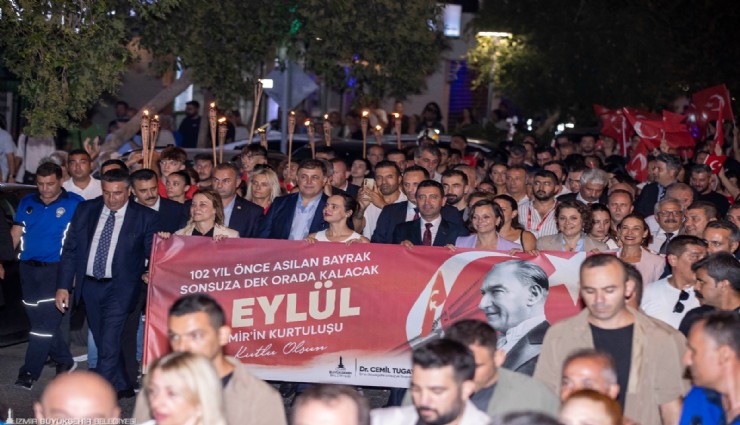 İzmir'in kurtuluşunun 102’nci yıl dönümü coşkulu kutlamalara sahne oldu. İzmir Büyükşehir Belediyesi'nin ev sahipliğinde düzenlenen etkinlikler tüm gün devam etti. Program kapsamında düzenlenen Fener Alayı yürüyüşü ile kutlamalar geceye taştı. Yürüyüşe İzmir Büyükşehir Belediye Başkanı Cemil Tugay ve eşi Öznur Tugay, Cumhuriyet Halk Partisi (CHP) İzmir İl Başkanı Şenol Aslanoğlu, CHP İzmir Milletvekili Ednan Arslan, ilçe belediye başkanları ve eşleri, İzmir Büyükşehir Belediyesi bürokratları, sivil toplum kuruluşu temsilcileri, meclis üyeleri, muhtarlar ve İzmirliler katıldı.