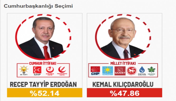 4. Açılan sandık oranı %98: Erdoğan %52.14, Kılıçdaroğlu: %47.86