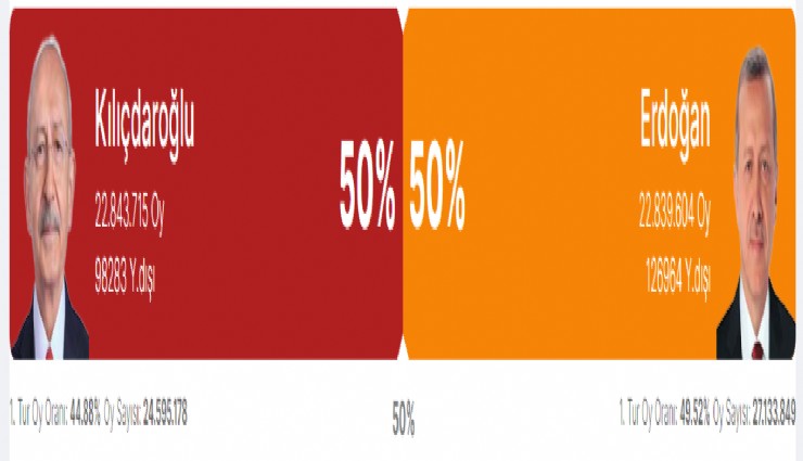 4. Açılan sandık oranı yüzde 85: Kılıçdaroğlu: 50 Erdoğan: 50