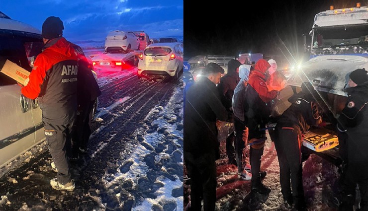 Açıklamada, “Turuncu ve sarı uyarı verilen illerimizden toplam 3 bin 267 ihbar alınmıştır. İhbarlara müdahale ve mahsur kalan vatandaşları güvenli alanlara alma çalışmaları devam etmektedir. Uyarı verilen illerimizde yürütülen çalışmalarda toplam 15 bin 818 personel, 6 bin 635 araç görev yapmaktadır. Yoğun kar yağışı sebebiyle Nevşehir, Sivas, Tokat, Yozgat, Ordu, Bolu, Kayseri ve Niğde il geneli ile Adana’nın Tufanbeyli ilçesinde 25 Kasım Pazartesi günü eğitim ve öğretime 1 gün ara verilmiştir. Yoğun kar yağışı ve tipi sebebiyle bazı bölgelerde elektrik kesintisi meydana gelmiş; 24 farklı noktada yollar ulaşıma kapanmıştır. Yolların açılması ve kesintilerin giderilmesine yönelik çalışmalar devam etmektedir. Olumsuz hava şartlarından etkilenen vatandaşlarımıza AFAD ve Kızılay tarafından toplam bin 616 battaniye dağıtımı yapılmıştır. AFAD, Kızılay, belediyeler ve sivil toplum kuruluşları tarafından 18 bin 471 kumanya/çorba ile içecek ve su dağıtımı yapılmıştır. Dağıtım çalışmaları devam etmektedir. Çalışmaları, tüm ekiplerimiz ve ilgili kurumlarımızla birlikte sürdürüyoruz” denildi.