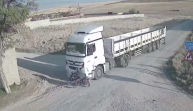 Öte yandan, yaşanan kazı anı ise çevredeki bir güvenlik kamerasına yansıdı. Görüntülerde tırın motosiklete çarptıktan sonra sürüklediği görülüyor.