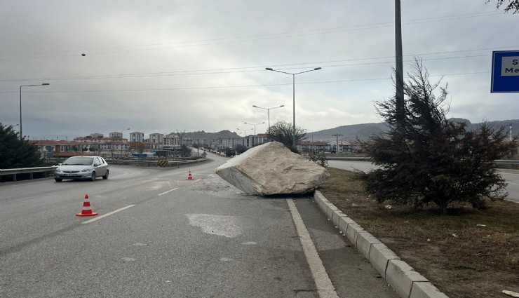 Olay, ANS Köprülü kavşakta meydana geldi. Edinilen bilgilere göre, Organize Sanayi Bölgesindeki bir mermer fabrikasından tıra yüklenen mermer bloğu bilinmeyen bir sebepten ötürü aracın dorsesinden yola düştü. Olay esnasında yolun boş olması yaşanabilecek bir facianın önüne geçti. Sürücülerin zor anlar yaşadığı olayda bölge giden polis ekipleri ise karayolunun bir şeridini trafiğe kapatarak güvenlik önlemi aldı. Ekipler düşen mermer bloğunun yoldan kaldırılması ise çalışmalarını sürdürüyor.