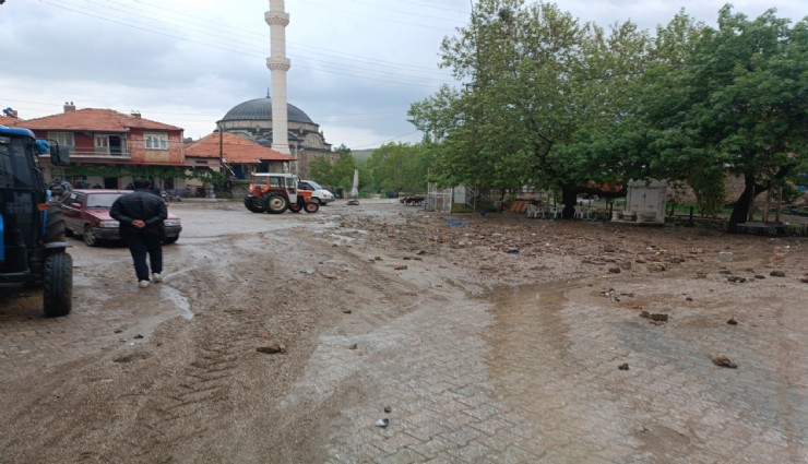 Afyonkarahisar’ın Şuhut ilçesinde aniden bastıran dolu ve sağanak yağış bir köyde sele neden oldu. Tarım arazilerinin sular altında kaldığı köyde sel suları parke taşlarını yerinden söküp önüne ne kattıysa sürükledi.