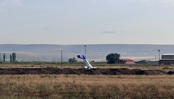 Afyonkarahisar’da zorunlu iniş yapan eğitim uçağının bir kısmının hayvan sulama kanalının içine düştü