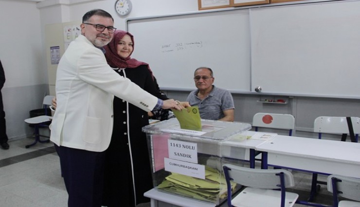 AK Parti İzmir İl Başkanı Bilal Saygılı, eşiyle birlikte geldiği okulda oyunu kullandı.