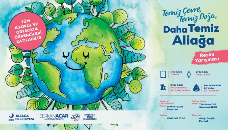 Öğrenciler arasında çevre bilincinin oluşturulmasını hedefleyen Aliağa Belediyesi, ilk ve ortaokullar arası ‘Temiz Çevre, Temiz Doğa, Daha Temiz Aliağa’ temalı resim yarışması düzenliyor.