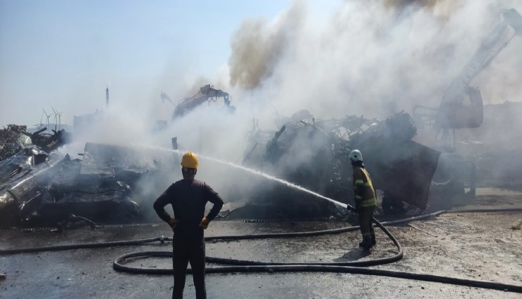 İzmir'in Aliağa ilçesinde bir işletmeye ait hurda depolama alanında çıkan yangın itfaiye ekipleri tarafından kısa zamanda söndürüldü.