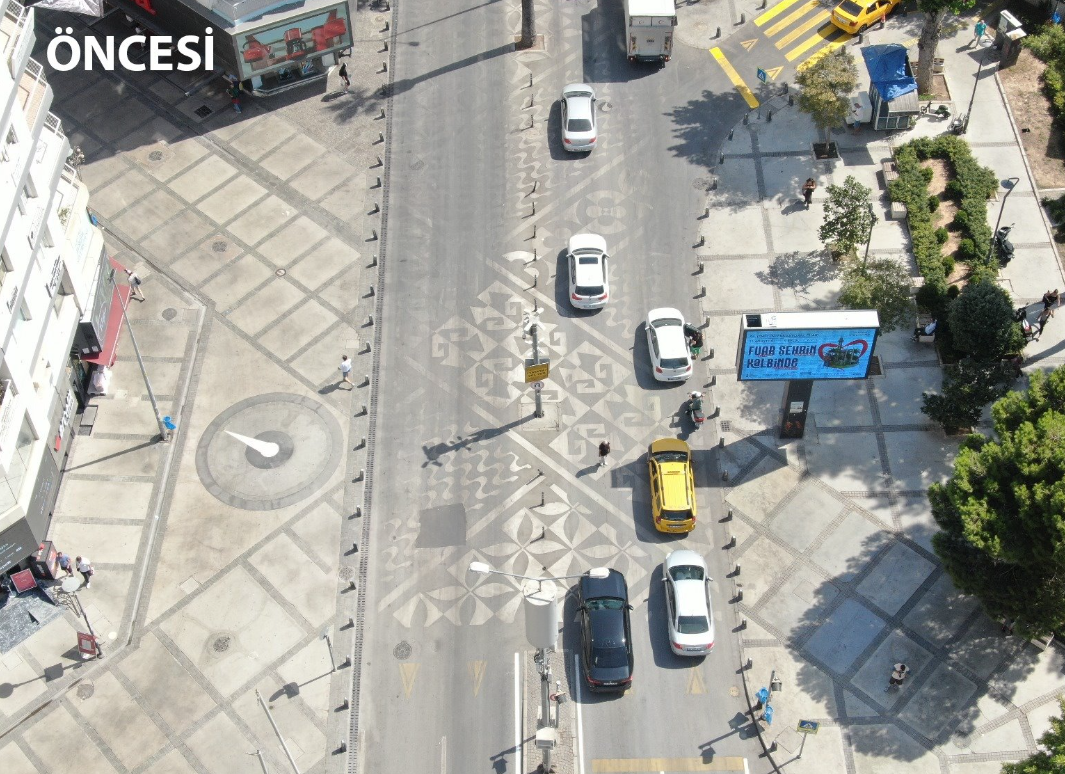 İzmir Büyükşehir Belediyesi, yaya trafiğinin en yoğun olduğu bölgelerden Alsancak Talatpaşa Bulvarı’nda, Kıbrıs Şehitleri Caddesi’ni Dominik Caddesi’ne ve Ali Çetinkaya Bulvarı’na bağlayan aksta yaptığı yaya öncelikli platformu yeniledi. 34 metre uzunluğunda, Avrupa’daki örneklerine benzer yaya platformu, cuma günü kapılarını açacak 94. İzmir Enternasyonal Fuarı öncesinde yeniden boyandı ve çizgiler belirgin hale getirildi. Oluşacak yaya sirkülasyonu öncesinde tamamlanan yaya platformu İzmir temalı figüratif desenlerden oluşuyor. Engelli ve yaşlı vatandaşların erişimi göz önünde bulundurularak yol ve kaldırımların aynı seviyede olduğu platformla yaratılan mini meydan, görsel açıdan da kente renk katıyor.