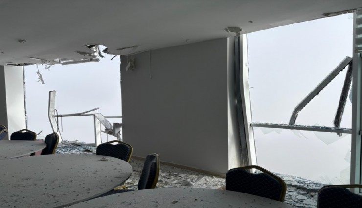 Ambulans helikopterin hastanenin dördüncü katındaki yemekhane bölümüne çarptığı yer hastane içerisinden görüntülendi. Görüntülerde hastane içindeki, duvar ve pencerelerdeki tahribat yer alıyor.