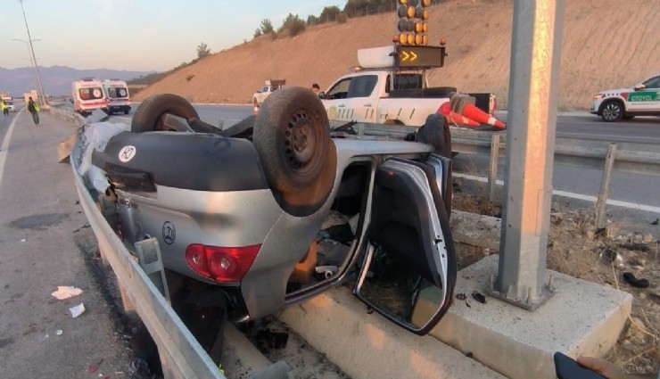 Aydın-Denizli otoyolunda sürücünün direksiyon hakimiyetini kaybetmesi sonucu bariyere çarpıp takla attı. İki şeridi birbirinden ayıran bariyerlerin arasına girerek ters dönen otomobilde bulunan sürücü G.Ö. ve yolcu konumunda bulunan N.O. ile H.B. yaralandı.