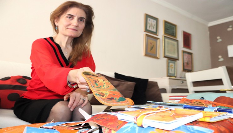 İzmir'de yaşayan Nebahat Türkyılmaz, atık halde bulunan deri parçalarına Ebru Sanatını işleyerek onları; defter, cüzdan, gözlük kılıfı, takı ve çanta gibi eşyalara dönüştürüyor. El emeğiyle ürettiği eşyaları ileri dönüşüme kazandıran Nebahat Türkyılmaz, "Hedefim Somut Olmayan Kültürel Miras Listesi'ne girmek" dedi.
