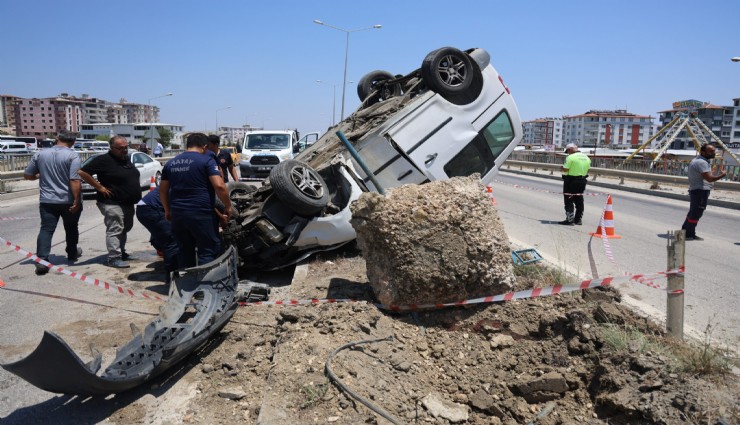 AYDINLATMA DİREĞİNE ÇARPTI: "Araç ters döndü"