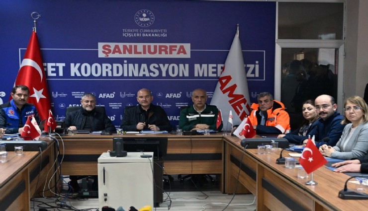 İçişleri Bakanı Süleyman Soylu, Hazine ve Maliye Bakanı Nureddin Nebati ile Tarım ve Orman Bakanı Vahit Kirişci, Şanlıurfa Güvenlik ve Acil Durumlar Koordinasyon Merkezi’nde (GAMER) açıklamalarda bulundu.