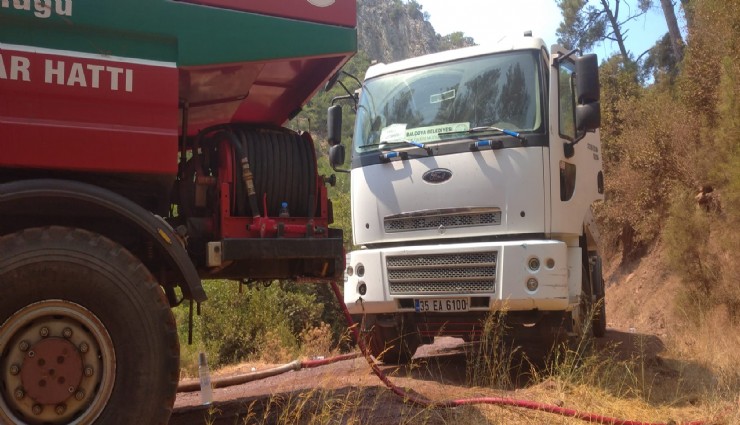 Balçova Belediye Başkanı Fatma Çalkaya sosyal medya hesaplarından yayınladığı mesajda, “Marmaris Turgutköy’de yangın söndürme çalışmalarına destek olan 35 EA 6100 plakalı su tankerimiz alevlerin içinde kalarak yandı. Şükürler olsun ki şoför arkadaşımız Süleyman Türk sağlıklı ve jandarma ile birlikte güvenli bölgeye geçti” ifadelerini kullandı
