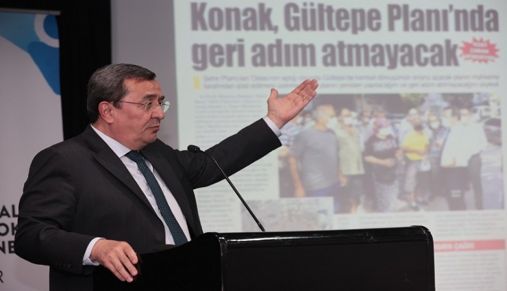 “Dönüşüm ve değişimin önünü açmak bizim görevimiz. Yaptığımız anketlerde de değişim ve dönüşüm isteği çıktı. Konak Belediyesi’nin çok tecrübeli ve donanımlı bir planlama ekibi var. Göreve geldikten sonra dokuz ay gibi çok kısa bir sürede 300 hektarlık Gültepe kentsel dönüşüm planlarını tamamladık. Yeşil alanı, sosyal donatı alanlarını yaklaşık üç katına çıkaran bir plan hazırladık. 17 kamu kuruşundan görüş aldık, odalarımıza sunum yaptık. Planlar kendi meclisimizden de Büyükşehir meclisinden de oybirliğiyle geçti. Biz yaptığımız hiçbir işi kapı arkasında yapmadık. Hep şeffaf olduk. O bölgedeki muhtarlarımızı bilgilendirdik. Planlar askıya mahallede çıktı, web sitemizde yayınlandı, askı süreci tam bir şeffaflıkla yapıldı. Planlar askıdan indikten sonra 60 günlük itiraz süresinin 59’uncu günü Şehir Plancıları Odası mahkemeye verdi. Bizim vazgeçmeyeceğimiz bir şey var, Gültepe’deki yenileşmeden, kentsel dönüşümden hiçbir şekilde vazgeçmeyeceğiz. Biz bu işi yapmakta kararlıyız. Yola çıktık, yaptığımız işi yarı yolda bırakmayacağız. Mahkemenin ileri sürdüğü ne gerekçe varsa onları düzeltiyoruz. Bundan sonraki süreci uzlaşı içinde sürdürmek için de Şehir Plancıları Odası’nı da davet ediyoruz.”