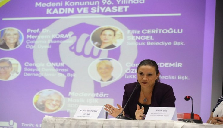 Medeni Kanun’un yürürlüğe girişinin 96. Yılı sebebiyle Konak Belediyesi Türkan Saylan Kültür Merkezi’nde “Kadın ve Siyaset” konulu bir panel düzenlendi. Sosyal Demokrasi Derneği ve İzmir Kent Konseyi Kadın Meclisi tarafından düzenlenen panelde katılımcılar Medeni Kanun ışığında kadın ve siyaset kavramları üzerine konuştu.