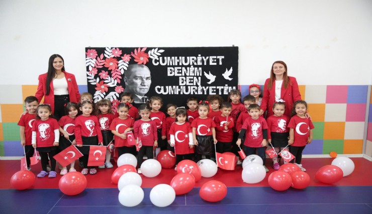 Konak Belediyesi’nin sosyal belediyecilik hizmetleri arasında yer alan ve 3-5 yaş grubuna ücretsiz okul öncesi eğitim desteği verdiği Mutlu Çocuklar Oyun Evlerinde, Cumhuriyet coşkusunu yaşatmak için kutlama programları hazırlandı. Sekiz ayrı merkezde eş zamanlı olarak gerçekleştirilen etkinlikler kapsamında önce öğretmenler tarafından günün anlam ve önemini belirten konuşmalar yapıldı. Saygı duruşu ve İstiklal Marşı’nın okunmasının ardından miniklerin hazırladığı gösterilere yer verildi. Programda Ulu Önder Mustafa Kemal Atatürk ile Cumhuriyet’i anlatan müzikler çalındı, şarkılar söylendi ve şiirler okundu. Öğretmenleri eşliğinde hazırladıkları özel gösterileri ailelerine sunan çocuklar, Cumhuriyet Bayramı coşkusunu ebeveynleriyle birlikte paylaşmanın mutluluğunu yaşadı.