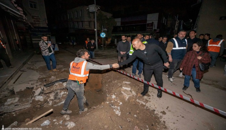 Soyer: “50 yıllık sorunu çözüyoruz” Kemeraltı’nda esnafın işlerini aksatmamak için çalışmaları gece sürdürdüklerini belirten Başkan Tunç Soyer, “Kemeraltı’nın 50 yıllık sorununu çözüyoruz. Çok zor ve büyük bir çalışma. Sokakların altındaki bütün altyapıyı değiştiriyoruz. Altyapının ardından yol yüzeyini taşla kaplıyoruz. Kemeraltı esnafımız bu süreçte sıkıntı çekiyor. Vatandaşlar da alışveriş yaparken tabii ki sıkıntı yaşıyor. Ama bu büyük adımı atmazsak Kemeraltı’nın o hayalini kurduğumuz güzel günlerine ulaştırmamız mümkün değil” dedi.