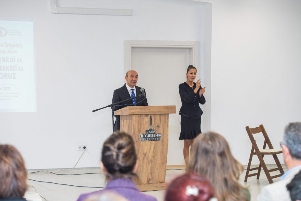 İzmir Büyükşehir Belediye Başkanı Tunç Soyer, 3 Aralık Dünya Engelliler Günü nedeniyle İzmir Büyükşehir Belediyesi'nin saatler süren meclisleri, açılış töreni ve etkinliklerinde işitemeyenlere ses olan işaret dili çevirmeni Melek Uslular’la bir araya geldi. Başkan Soyer, “Yaptığınız iş bir kişiye bile ulaşıyorsa o iş emeğe değiyor” dedi. Engelsiz bir kent yaratmak için çalıştıklarını söyleyen Başkan Soyer, işaret diliyle “Engelsiz bir dünya mümkün” mesajını verdi. İşitme engelli anne ve babanın çocuğu olan, kendini geliştirerek Türk İşaret Dili çevirmeni ve eğitmeni olan Melek Uslular, ailelere küçük yaştan itibaren çocuklarına tüm engel gruplarına karşı empati oluşturmak için gereken eğitimi vermelerini tavsiye etti.