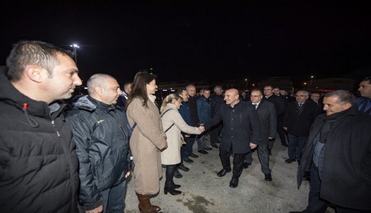 Sabah saat 5’te ESHOT’un Adatepe’deki Garajı’na giderek ilk sefere çıkacak ESHOT çalışanlarıyla bir araya gelen Başkan Tunç Soyer’e, İzmir Büyükşehir Belediyesi Genel Sekreteri Barış Karcı, ESHOT Genel Müdürü Erhan Bey ve İzmir Büyükşehir Belediyesi bürokratları eşlik etti.