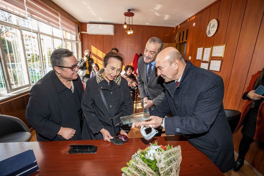 Taşkın, ilkokul diplomasını plaket olarak Başkan Soyer’e verdi.