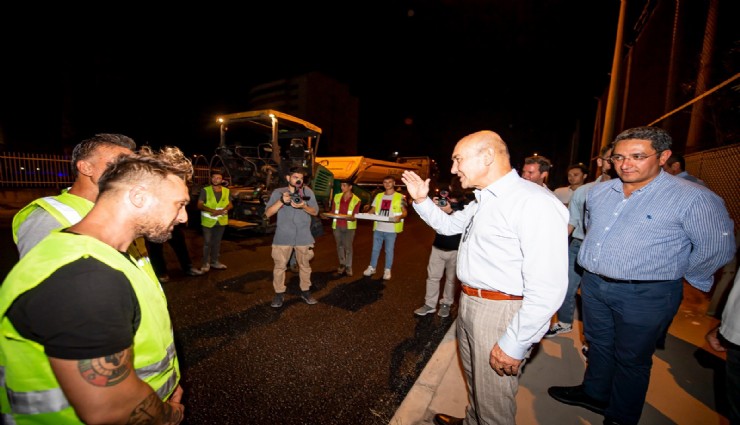 Başkan Tunç Soyer asfalt serim çalışmalarını inceledi