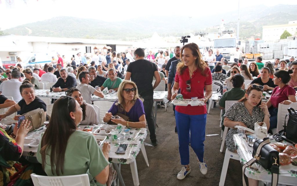 Karşıyaka Belediyesi tarafından düzenlenen bayram yemeği, Örnekköy Şantiye Tesisleri’nde kurulan dev sofrada yüzlerce çalışanı bir araya getirdi. Belediye Başkanı Yıldız Ünsal’ın ev sahipliğindeki yemeğe meclis üyeleri ile bürokratlar da katıldı. Emekçilerin Başkan Ünsal’ı alkışlarla karşıladığı buluşmada birlik, beraberlik ve dayanışma mesajları verildi. Mesai arkadaşlarıyla birlikte yemek yiyen Ünsal, Kurban Bayramı’nın sağlık, mutluluk ve barış getirmesini diledi.