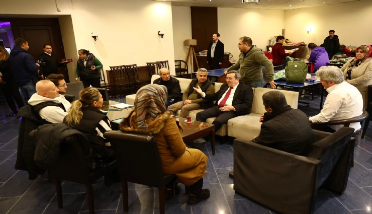 Başkan Batur, Konak’taki otellerde ağırlanan depremzede aileleri ziyaret etti. İlk etapta otellere yerleşen 60 vatandaşla buluşan Başkan Batur, Konak Belediyesi’nin tüm ekipleriyle depremden etkilenen vatandaşların ihtiyaçları için hazır olduğunu dile getirerek “Neye ihtiyacınız varsa, biz sizin için buradayız” dedi.