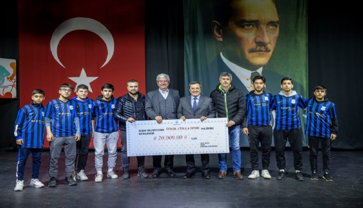 Konak ilçesinde faaliyet gösteren amatör spor kulüplerine destek töreninde konuşan Başkan Batur, “Amatör spor, adı üstünde, hiçbir menfaat, karşılık beklemeden, buradaki güzel çocuklarımıza, gençlerimize hizmet etmek demek. Bir sanattır bu. Spora ve gençlere yatırım yapmaya, sporcu dostu belediye olmaya devam edeceğiz” dedi.