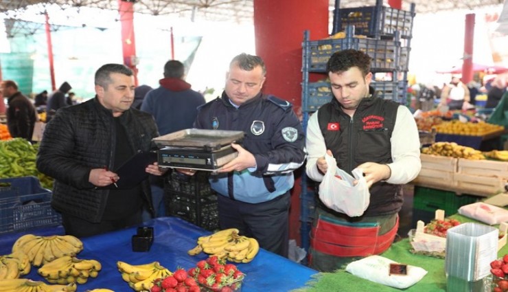 Bayraklı Belediyesi zabıtasından pazar yerlerinde tartı denetimi