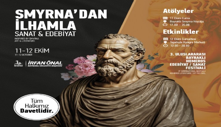 Bayraklı Belediyesinin bu yıl üçüncüsünü düzenlediği Uluslararası Bayraklı Homeros Edebiyat ve Sanat Festivali, sanat ve edebiyat dünyasının önemli isimlerini bu yıl da bir araya getirecek. ‘Smyrna’dan İlhamla Sanat ve Edebiyat’ temasıyla 11-12 Ekim tarihlerinde gerçekleşecek festival, katılımcılara unutulmaz anlar yaşatacak.
