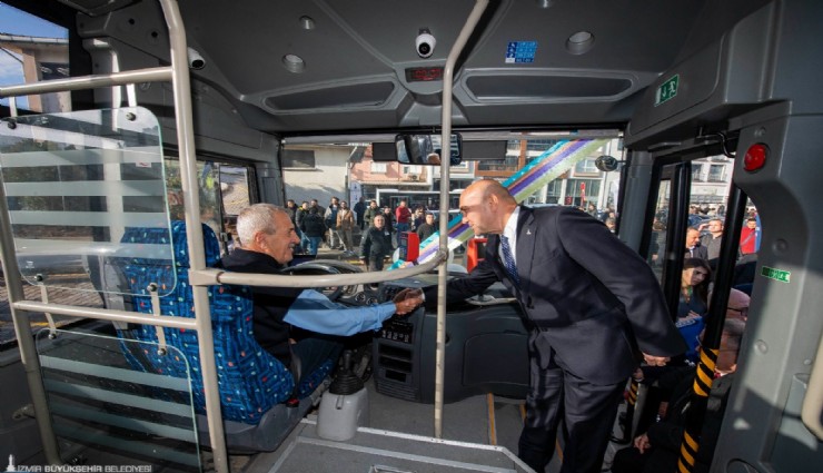 Konuşmaların ardından Başkan Soyer İZTAŞIT Bergama otobüsüne binerek ilk seyahate eşlik etti.