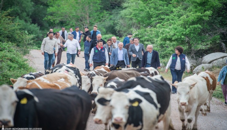 Bergama’da geçimini hayvancılıktan sağlayan üreticilerin geleneksel hayvan salımı programı, bu yıl da İzmir Büyükşehir Belediye Başkanı Tunç Soyer’in katılımıyla yapıldı. Çamavlu Köyü’nden 23 bin dekarlık Çamavlu Merası’na doğru 11 bin küçükbaş ve 4 bin büyükbaş hayvanın çıktığı yaz yolculuğu, Köy-Koop İzmir Birliği ve S.S Kozak Çamavlu Tarımsal Kalkınma Kooperatifi tarafından düzenlendi. Hayvan salımına Başkan Tunç Soyer ile birlikte Köy-Koop İzmir Birliği Yönetim Kurulu Başkanı Neptün Soyer, Çamavlu Kooperatifi Başkanı Mustafa Kocabaş, üreticiler, kooperatif ortakları, muhtarlar ve yurttaşlar katıldı. Başkan Soyer, meranın kapısını açarak hayvanların yaz yolculuğunu başlattı ve beraberindekilerle yürüyüşünü sürdürdü. Yürüyüş sonrasında Başkan Soyer, bölgedeki en yaşlı çınar ağacının altında dinlendi. Küçükbaş ile büyükbaş hayvanların yaylaya doğru yolculukları iki gün boyunca devam edecek. Büyükbaş ve küçükbaş hayvanlar altı ay boyunca bu yaylada kalacak.