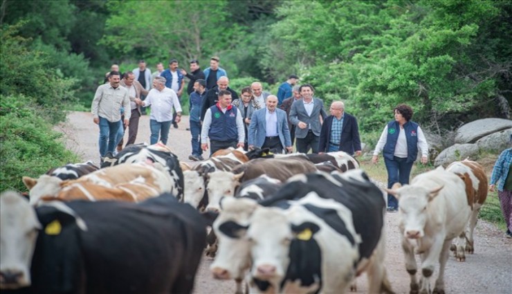 Bergama'da geçimini hayvancılıktan sağlayan üreticilerin geleneksel hayvan salımı programı, bu yıl da İzmir Büyükşehir Belediye Başkanı Tunç Soyer'in katılımıyla yapıldı. Çamavlu Köyü’nden 23 bin dekarlık Çamavlu Merası’na doğru 11 bin küçükbaş ve 4 bin büyükbaş hayvanın çıktığı yaz yolculuğu, Köy-Koop İzmir Birliği ve S.S Kozak Çamavlu Tarımsal Kalkınma Kooperatifi tarafından düzenlendi. Hayvan salımına Başkan Tunç Soyer ile birlikte Köy-Koop İzmir Birliği Yönetim Kurulu Başkanı Neptün Soyer, Çamavlu Kooperatifi Başkanı Mustafa Kocabaş, üreticiler, kooperatif ortakları, muhtarlar ve yurttaşlar katıldı. Başkan Soyer, meranın kapısını açarak hayvanların yaz yolculuğunu başlattı ve beraberindekilerle yürüyüşünü sürdürdü. Yürüyüş sonrasında Başkan Soyer, bölgedeki en yaşlı çınar ağacının altında dinlendi. Küçükbaş ile büyükbaş hayvanların yaylaya doğru yolculukları iki gün boyunca devam edecek. Büyükbaş ve küçükbaş hayvanlar altı ay boyunca bu yaylada kalacak.