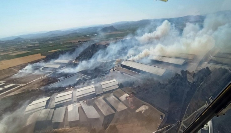 İzmir'in Bergama ilçesinde, orman dışı otluk alanda çıkan yangın bölgedeki bir süt işletme tesisine sıçradı. Ekipler, tesisin daha fazla etkilenmemesi için yoğun çaba harcarken, İzmir-Çanakkale karayolunun Sağancı mevkii trafiğe kapandı.