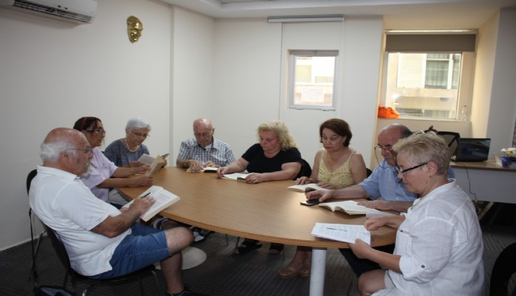 Karşıyaka Belediyesi Bilge Çınarlar Sağlıklı Yaş Alma Merkezi üyeleri, kitap kulübünde başlattıkları proje kapsamında, görme engellilerin kaynak ulaşımını kolaylaştırmak için kitap seslendiriyor.