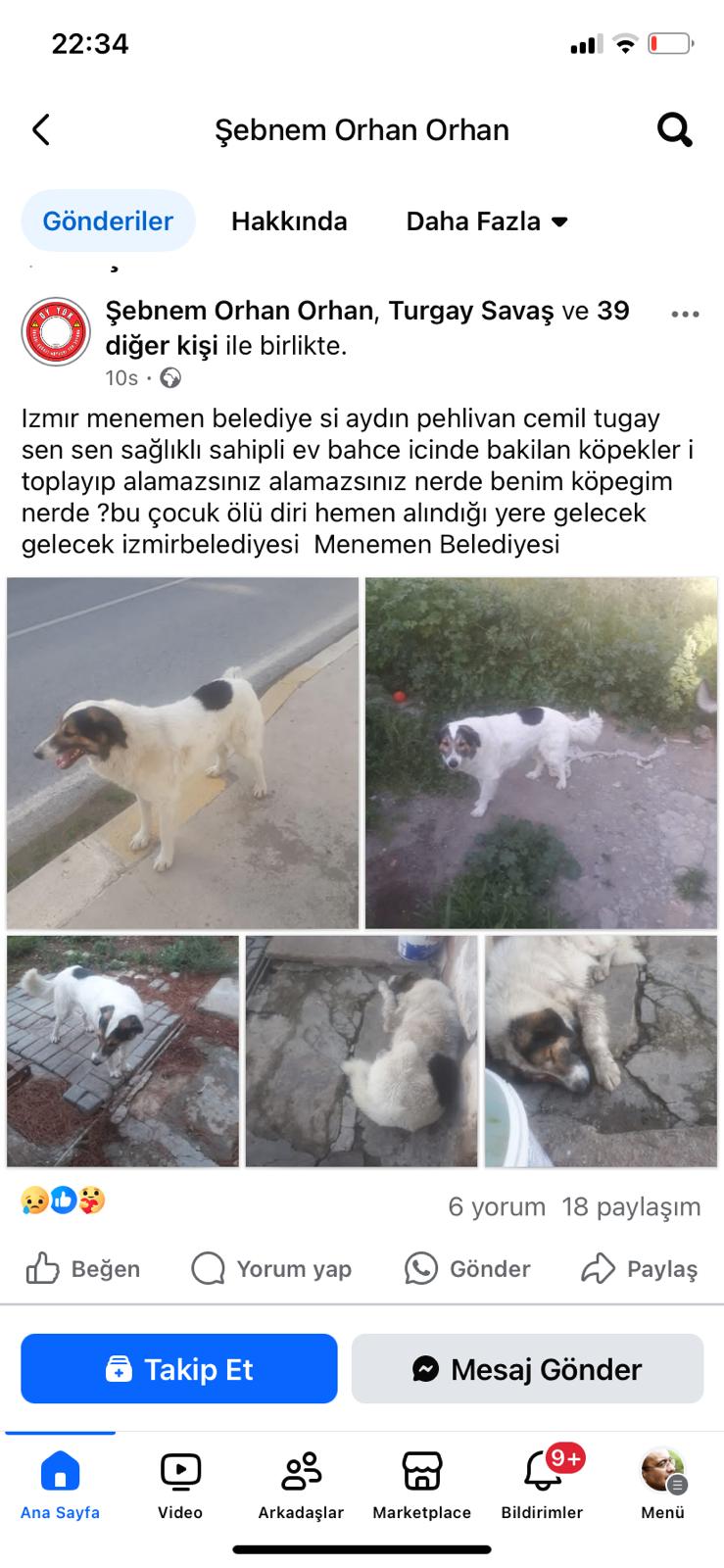 "İzmır Menemen Belediye Başkanı Aydın pehlivan ve İzmir Büyükşehir Belediye Başkanı Cemil Tugay, sağlıklı, sahipli, bahçe icinde bakılan köpekleri toplayıp alamazsınız. Nerede benim köpegim nerde Bu çocuk ölü ya da diri hemen alındığı yere gelecek."