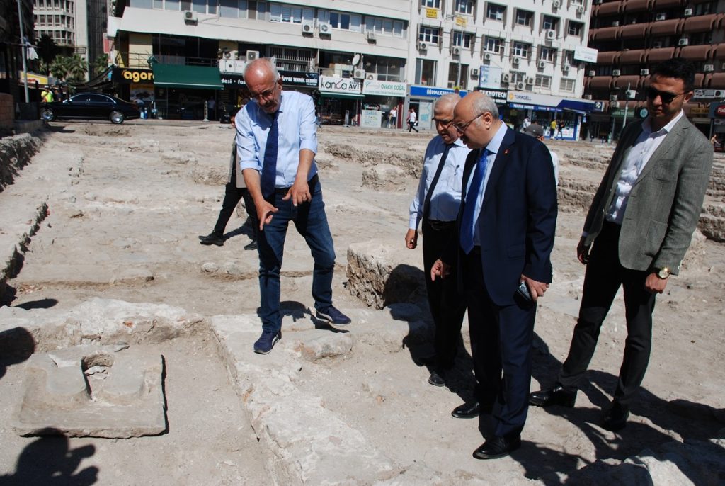 Vali Köşger, "Atatürk, Kurtuluş Savaşı gerçekleştikten hemen sonra, cumhuriyeti ilan etmeden önce 17 Şubat 1923'te üzerinde bulunduğumuz alanda daha önce inşa edilmiş olan Osmanlı Bankası Deposu diye adlandırılan bu binada gerçek bağımsızlığın ekonomik bağımsızlıkla sağlanacağı şuuruyla iktisat kongresi yapmayı planlanmıştır. 1. İzmir İktisat Kongresi'nin yapıldığı binanın bulunduğu alandayız. Burası iki parselden oluşuyor. 1979 yılında tam tescillenme aşamasındayken bina yıkılmış. İki parça olan arsanın biri tescilliydi. Biz 2021 yılının aralık ayında ikinci parçayı da tescilledik. Kongrenin 100. yılında, 17 Şubat 2023'te bir faaliyet başlayacağını daha önce söylemiştim. Şimdi o faaliyetin ikinci aşamasındayız. Birinci aşamada 14 Nisan itibariyle arsayı sahibinden satın aldık ve çalışmalar başladı. İkinci aşama ise buradaki arkeolojik alanın kazılmasıyla ilgili. Burası, bizdeki arkeolojik bilgilere göre İzmir'in iç limanı. Dolayısıyla Osmanlı döneminde doldurulmuş bir alan. O doldurulmuş alan üzerine yapılan bir binadan bahsediyoruz. Öncelikli hedef, Osmanlı arkeolojik kazısı yapmak. Şu an binanın temel görüntüleri ortaya çıkmış durumda. Bu aşamadan sonra bir iki noktadan sondaj yapılacak. Burası dolgu alanı olmasına rağmen daha eskiye dayanan arkeolojik bilgi olabilir mi diye sondaj kazıları yapılacak. Bu kazılarda eğer daha geçmiş tarihli bulgu, belge ve kalıntı ele geçerse kazı daha da ilerletilecek ancak dolgu alanı olduğunu bildiğimizden daha eski tarihli bir kalıntıya rastlanılmayacağı düşünülüyor. Ama bu kazı her halükarda yapılacak. Daha sonra da bina ile ilgili yol almaya başlayacağız. Binanın mimari projesi de tamamlanıyor. İnşallah en kısa sürede yeniden inşa edeceğimiz binada da ihale yapıp 17 Şubat 2023'te uluslararası bir iktisat kongresini gerçekleştireceğiz. Kazı sırasında bulunan parçaları da uygun noktalarda sergileyeceğiz" dedi.