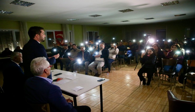 Bornovalılarla buluşmalarına hız kesmeden devam eden Bornova Belediye Başkan Aday Adayı Güney Temiz, Naldöken Mahallesi'nde gerçekleştirilen Halk Buluşmasında elektriklerin kesilmesine rağmen konuşmasına cep telefonları ışığında devam etti.